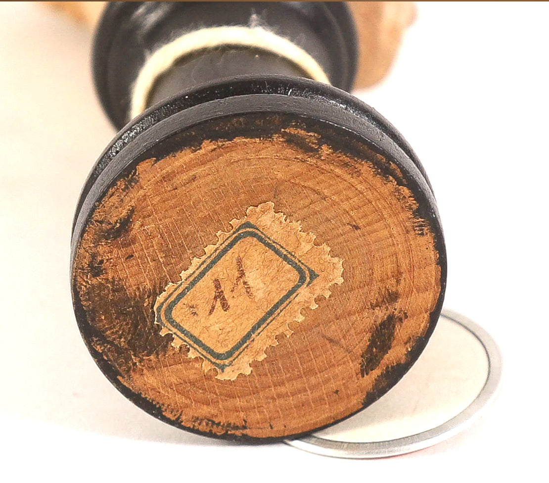 Size:  2-5/8 in (6.7 cm) Height (head); overall height with socle 4-1/2 in (11.4 cm).  Minor chips and surface wear consistent with age; mounted on a modern wood socle with an old paper label to the underside, no 11.
