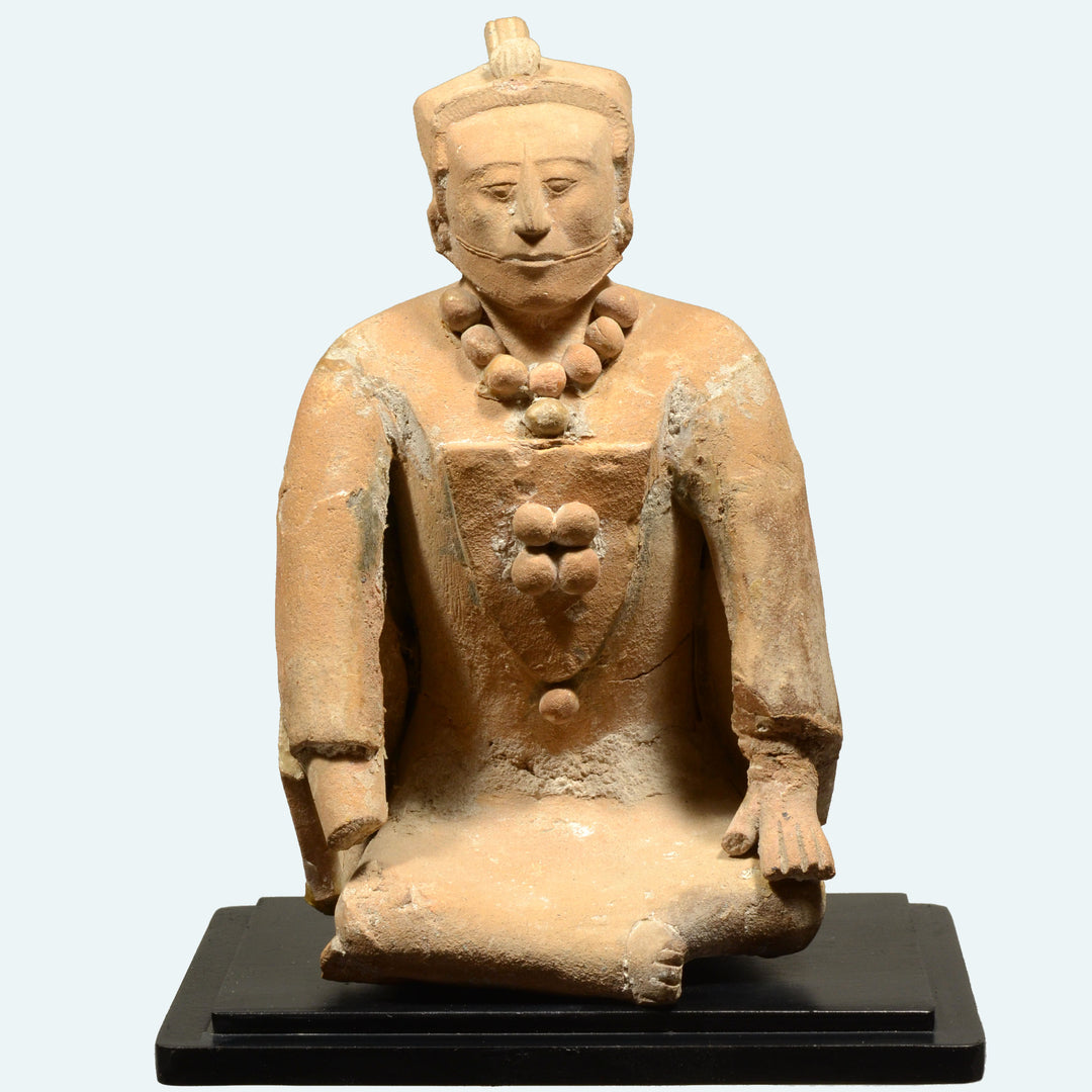 The ancient Maya created one of the most intellectually and artistically advanced civilizations in the Pre-Columbian world, flourishing across the tropical lowlands and highlands of present-day Guatemala, Belize, Honduras, and southern Mexico for over two thousand years. The Maya possessed all the hallmarks of a great civilization—soaring temple architecture rising above the jungle canopy, a complex religious cosmology centered on divine kingship and cyclical time, and a fully developed hieroglyphic writing system, the only true script of the Pre-Columbian Americas. Maya artists were unrivaled in their command of narrative and detail, producing masterworks in carved jade, painted ceramic, stucco, flint, bone, and stone that vividly depict scenes of royal ceremony, mythology, warfare, and the supernatural world with a sophistication unmatched in the ancient Americas. Their polychromed cylindrical vessels—painted with dynamic palace scenes and elaborate hieroglyphic texts—rank among the finest achievements of Pre-Columbian art, while carved jadeite ornaments, eccentric flints, and monumental limestone reliefs reveal a culture deeply devoted to cosmic order. Art For Eternity Gallery offers a select collection of authentic Maya antiquities, including ceramic vessels, jade carvings, stone figures, and ritual objects, each carefully researched for provenance and authenticity, providing collectors with a direct connection to one of the most brilliant civilizations the world has ever known.